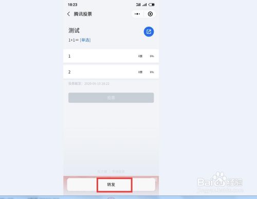 如何做一个投票链接 投票链接打不开什么情况 发表评论 / app投票怎么拉票, 微信小程序投票拉票, 微信链接怎么拉投票, 未分类, 自动投票拉票 / 作者: 微信拉投票 如何做一个投票链接 投票链接打不开什么情况 打开微信,在搜索栏里输入“微信投票”,在下面的关联窗口里单击“微信投票小程序”进行搜索 在搜索结果里选择“腾讯投票”小程序 3 页面会自动跳转到小程序,本例选择新建一个单选投票 4 进入投票设置页面,设置标题,内容和选项,点击完成 5 进入下一页面后可以看到我们新建的投票页面,右上角有个转发按钮,点击 6 在最下方会出现一个转发,单击该按钮 7 页面会跳转到转发对象页面,选择我们要发给的微信朋友或微信群即可,系统即会自动将投票链接发到该朋友或群里 经验内容仅供参考,如果您需解决具体问题(尤其法律、医学等领域),建议您详细咨询相关领域专业人士。 作者声明:本篇经验系本人依照真实经历原创,未经许可,谢绝转载。